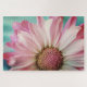 Ce superbe puzzle présente un tournesol rose sur un arrière - plan turquoise.