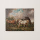 Belle scène avec 3 chevaux debout dans un terrain couvert d'herbe avec des arbres dans l'arrière - plan et un ciel couvert nuageux orageux. Le tableau original a été créé par l'artiste anglais Charles Town à Liverpool en 1836.