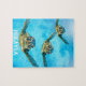Trois tortues de mer de bébé nagent dans les eaux bleues d'océan sur cette conception aquatique d'amusement. Le texte est facilement personnalisé.