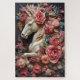 Jigsaw puzzle avec un imaginaire romantique fabuleux illustration d'une licorne avec des roses. Cette scie ferait un cadeau merveilleux pour tout amateur de puzzle qui aime les licornes ou les broderies.
