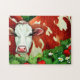 Puzzle Vache laitière rouge et blanche dans une patte de