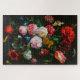 Still Life with Flowers in a Glass Vase (1650 - 1683) par Jan Davidsz Postcard. Cette photo montre un bouquet de fleurs rouges blanches et roses avec un chat.