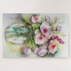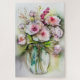 Immergez-vous dans le monde fascinant de l'art de l'encre d'alcool. Cette image présente un vase en verre délicat avec un bouquet de fleurs aux élégantes couleurs rose pâle, blanc perle et vert. Laissez ce travail inspirer vos sens et ajouter une touche d'élégance à votre espace.