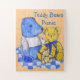 Ce joyeux tableau d'ours en peluche à vie morte est peint en aquarelle. Les trois mignonettes sont assis sur un chiffon de pique-nique blanc et bleu. Les trois petits ours sont de ma propre collection d'ours en peluche, les ours bleus s'appellent "Charlie bear", le gros ours jaune s'appelle "petite Barbara Bear" et le petit peluche...Je n’avais pas de nom pour lui, mais je me souviens qu’il n’avait qu’un oeil. La peinture à l'aquarelle de l'ours en peluche mignon est une image unique et se distingue nettement. Si vous cherchez un cadeau unique pour les amoureux des peluches de rien à cent, alors cet article fera le travail par défiance. C'est un puzzle pour les très jeunes et peut être customisé avec votre propre texte.