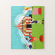 Droite d'étape, gens ! Étape jusqu'au puzzle vintage extraordinaire de cirque. Oui, viennent on, viennent tous ! Cette moitié du siècle moderne, caractéristiques de conception minimalistes d'art un dessin de bande dessinée d'un véritable, cirque de trois-anneau. Prenez-le tout dedans. Sur l'herbe luxuriante et verte, vous pouvez voir un chef de piste porter un manteau rouge avec les queues, le pantalon orange, et un casquette supérieur noir. Dans une main il tient un mégaphone vert, qui lui permet d'être entendu tout en vous disant de faire un pas juste ! Derrière le chef de piste, il y a une belle femme jonglant cinq boules. D'après les étoiles sur sa jupe de marine et dessus orange, elle est une étoile de l'exposition. À la gauche de l'homme avec le mégaphone, nous voyons un charnu, hercule. Il prend la confiance pour retirer une marine, un-épaulée, unitard, mais M. homme fort la fait avec le style. Ma qualité ! Vérifiez ces biceps de enflement en tant que ses ascenseurs cette haltère comme si elle est aussi légère qu'une plume. Son noir, moustache de guidon regarde aussi viril que le reste de lui. À la gauche du carrossier, il y a un rose, éléphant de bébé se tenant sur un podium rouge. Ne vous inquiétez pas. Le pachyderme juvénile semble être aussi docile comme chaton. Vers l'arrière de la scène, nous pouvons voir un homme fou-couvert faire un vrai clown de se. Il n'a pas acheté ces rouge et jaune, costume de style de harlequin outre du support ! Son casquette bleu, cheveux oranges et jaunes, peinture blanche de visage, et nez rouge le rendraient méconnaissable à sa propre mère. Et c'est seulement l'excitation que nous pouvons voir ! Qui sait ce que les singeries animées jouent dans les trois chapiteaux qui honorent l'arrière - plan ! Deux tentes bleues et d'aqua flanquent une tente rayée rouge et crème géante de chapiteau avec les lettres jaunes et noires qui définissent, "CIRQUE." Un jaune, drapeau de bannière ondule à partir du dessus de chaque tente. Le ciel est des nuances d'aqua, de sarcelle d'hiver, de bleu et blanc et est rempli de magique, étoiles de blanc. Juste comme le cirque lui-même, cette conception est amusement pour la famille entière et est parfaite pour des enfants de tous les âges !