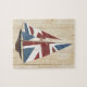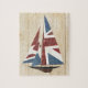© Avery Tillmon/Apple sauvage. Voilier avec le drapeau britannique sur l'arrière - plan en bois