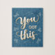 Vous avez ce puzzle unique avec un lettrage fait à la main design de citation inspirante dans un style bleu chic. Le design artisanal ajoute une touche artistique qui transforme le puzzle en une belle pièce d'art. Il fait un grand cadeau pour un passionné de puzzle ou des amateurs de puzzle dans votre vie. Détendez-vous, amusez-vous et rappelez-vous toujours, vous avez ceci !