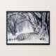 Beau tigre blanc avec les rayures noires et yeux bleus se situant dans la neige.