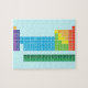 Puzzle avec tableau périodique des éléments, avec chaque groupe d'éléments marqué en couleurs arc-en-ciel.
