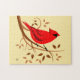 Art cardinal rouge décoratif sur puzzles de scie avec branches tourbillonnantes et feuille de couleur automne