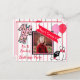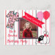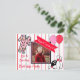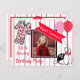 Jolie rose et rouge rayé bowling thème pj fête fille's anniversaire invitations avec des ballons mignons et des graphismes cupcake.