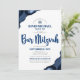 QR Code Bar Mitzvah Navy Blue Agate Script Modern Einladung
