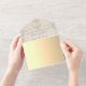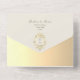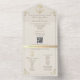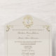 Eine luxuriöse, elfenbeinfarbene und goldene barocke All-in-One-Hochzeitseinladung, die für Paare geschaffen wurde, die klassische Eleganz und moderne Zweckmäßigkeit lieben. Mit aufwendigen goldenen Akzenten und einem vintage-barocken Monogramm-Wappen gestaltet, strahlt diese Einladung zeitlose Charme aus und hält alles schön organisiert und umweltfreundlich.