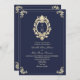 QR Code Baroque Navy Blue Wedding Einladung