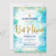 QR Code Bat Mitzvah Türkis Gold Foil Wasserfarbe Einladung