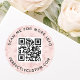 Runde, hellrosa Marmoraufkleber mit QR-Code und benutzerdefiniertem Text. Ändern Sie die Schriftart- und Schriftart-Farben, verschieben und verändern Sie Elemente mit dem Entwurfstool. Folgen Sie uns auf Facebook: @business stationery für weitere Produkte, News, Verkäufe und mehr.
