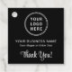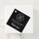 Moderne Werbe-Black-hang-Etikette für Ihr Unternehmen oder Ihre Organisation Verpackung. Laden Sie Ihr Logo hoch und fügen Sie drei Textzeilen hinzu, z. B. Ihren Namen, Ihren Slogan und "Danke" in einfacher weißer Schrift. Geben Sie auf der Rückseite die URP-Adresse Ihrer Website ein, um einen scannbaren QR-Code zu erstellen.