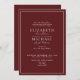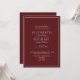 Un faire-part de mariage bordeaux classique et élégant, avec des scripts de calligraphie. Parfait pour la mariée moderne ayant une liaison formelle. Économisez le coût sur le joint stationnaire avec notre QR Code inclus au verso de l'invitation pour RSVP et détails Mariage. Voir la collection complète ici : https://www.zazzle.com/collections/elegant_burgundy_classic_script_wedding-119551906868087326 Contacter le concepteur pour les produits correspondants. Merci tellement pour soutenir notre petite entreprise, nous l'apprécions vraiment! Nous sommes si heureux que vous aimiez ce design autant que nous, et aimeriez que vous soyez invitation de faire partie de notre nouveau groupe Facebook privé Mariage Conseils de planification pour les épouses occupées. Rejoignez pour recevoir les dernières nouveautés sur les ventes, les nouvelles versions et plus encore! https://www.facebook.com/groups/622298402544171 Copyright Anastasia Surridge pour Invitations élégants, tous droits réservés.