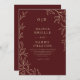 QR Code Burgundy & Gold Monogram Leaf Wedding Einladung