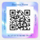 Personalisieren Sie diesen Aufkleber mit Ihrem schwarz-weißen QR-Code und Geschäftsnamen, Website und Nummer-Code in blau mit irisierender Grenze. Version 4.