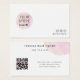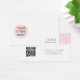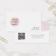 Ein einfaches rosa Aquarellbild, das sich perfekt für ein modernes Unternehmen mit weiblicher Kundenbasis eignet. Auf der Vorderseite fügen Sie Ihren Ladennamen und den Namen, den Sie auf Social Media-Kanälen. Drei Symbole wurden hinzugefügt. Wenn Sie mehr oder andere benötigen, wenden Sie sich an den Designer, der sie für Sie hinzufügen wird. Auf der anderen Seite: Sie personalisieren sich mit Ihrem Namen und Jobtitel. Fügen Sie Ihre QR, die auf Ihre Website verlinkt. Weitere Informationen können rechts hinzugefügt werden. Alle Textfelder können bearbeitet werden. Dies ist ein zeitgenössisches Aussehen, das Smartphone-freundlich ist, da Ihr spezifischer Code von einem digitalen Scanner gelesen werden kann.