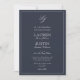 Eine klassische, elegante marineblaue, blau-weiße Monogramm-Hochzeitseinladung mit Skriptkalligraphie. Perfekt für die moderne Braut mit einer formalen Affäre. Rett die Kosten für die Haltbarkeit mit unserem QR-Code, der auf der Rückseite der Einladung für UAWG- und Hochzeitsdetails enthalten ist. Kontaktieren Sie Designer für passende Produkte. Copyright Anastasia Surridge für Elegant Invites, alle Rechte vorbehalten.