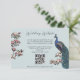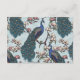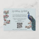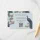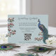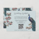 Diese moderne Bird Website QR Code Enclosure Card mit handgezeichnet blauen und aquamarinen Pfauenvögeln und magnolischen Blume und einem eleganten Muster auf der Rückseite. Alle Texte können bearbeitet werden.