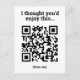 Drucken Sie den QR-Code-Entwurf Ihrer Wahl, um den Empfänger an die gewollt Website oder Webseite zu schicken. Vielleicht zu einem YouTube-Video oder einem anderen Link. Lass anderen scannen deinen QR-Code mit ihren Handys! Ersetzen Sie das Bild durch Ihren eigenen hochgeladenen QR-Code. In der Nachricht steht "Scan me"...