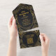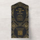 QR Code Diamond Black and Gold Art Deco Wedding All In One Einladung