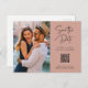 Diese schlichte und elegante boho terracotta Hochzeit speichert die Datums-Postkarten mit modernen handgeschriebenen Skripttypografie zusammen mit Ihrem bevorzugten persönlichen Foto und einem QR-Code, der zu Ihrer Hochzeitswebsite führt.