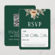 QR Code elegant, dunkelgrün floriert RSVP Karte