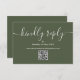 Eine einfache, elegante Signatur-Skript freundlich antworten Olivgrün RSVP Karte mit QR-Code. Entwickelt von Thisisnotme©