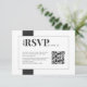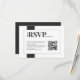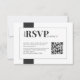 Cette carte RSVP de mariage est dotée de belles polices serif audacieuses avec des détails dans une police nette contrastant toutes les capitales, le tout dans un cadre géométrique moderne, et est créée pour coordonner avec notre collection "Minimal Bold Mariage". Cette carte de réponse est facilement personnalisable avec vos informations RSVP en ligne et votre propre code QR pour envoyer vos invités directement à votre site mariage sur le devant de la carte, et les monogrammes blancs de la mariée et du marié sur le fond gris foncé inverse.