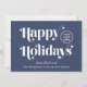 Business Corporate Weihnachtskarte für Kunden, Mitarbeiter, Affiliates, etc., mit "Happy Holidays" geschrieben in stilvoller weißer Serifentypografie vor blauem Hintergrund. Fügen Sie Ihr Logo und saisonale Begrüßung (danke, von uns allen, etc.) und Firmenname. Auf der Rückseite geben Sie Ihre Website-Adresse ein, um einen scannbaren QR-Code zu erstellen.