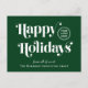 Grüne Weihnachtskarte für Ihre Kunden, Mitarbeiter, Partner, etc., mit "Happy Holidays" in stilvoller weißer Typografie, Ihrem Firmenlogo und Ihrem Firmennamen in einfacher, moderner weißer Typografie. Fügen Sie auf der Rückseite eine personalisierte saisonale Botschaft der Wertschätzung und Dank und geben Sie Ihre Website-Adresse, um einen QR-Code, den Kunden scannen können, um eine Verbindung zu Ihren Online-Plattformen.