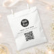 Eine moderne, minimalistische personalisierte Geschenktasche mit Business-Logo und QR-Code. Personalisieren Sie mit Ihrem Logo, QR Code und Details, um Ihre eigene elegante, schwarz-weiße Geschenktasche zu kreieren.