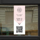 Ein einfaches, benutzerdefiniertes, rosa und weiß QR Code Business Vinyl Fenster Klammern Dekorzeichenvorlage in einem modernen minimalistischen Stil, der leicht aktualisiert werden kann mit Ihrem Firmenlogo, QR-Code, und benutzerdefinierten Text, z. B. Scannen Sie mich, scannen Sie, um sich anzumelden, scannen Sie, um mit uns zu verbinden!