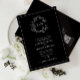 Wir lieben diese trendige, formelle Hochzeitseinladung in Schwarz-weiß! Es ist einfach, elegant und so hübsch, mit einem handgezeichneten, grünen Kranz umgeben von einem modernen Hochzeitsmonogramm. Traditionell, es enthält die Namen der Eltern, die die Hochzeit beherbergen, und ist personalisiert in eleganter Typografie und mit handgeschriebener Kalligrafie. Schließlich ist es in einem zarten Rahmen bestickt. Aber das ist noch nicht alles - dreh diese schöne Karte und du findest einen praktischen QR-Code, der gescannt werden kann, um deine Hochzeitsgäste direkt auf deine personalisierte Website zu bringen, sodass sie Zugang zu allen ihren Daten in einem Bereich haben. Diese optimierte Funktion ist ideal, um eine Übersicht der RSVPs behalten und Ihren Gästen unkomplizierte Informationen über Ihre Zeremonie, den Standort Ihres Empfangs, Fotos und vieles mehr zu geben. Suite hier ansehen: https://www.zazzle.com/collections/black_white_leafy_crest_monogram_wedding-119655862125661501 Kontaktieren Sie den Designer für passende Produkte, um die Suite zu vervollständigen, ODER für Farbvarianten dieses Designs. Copyright Anastasia Surridge für Elegant Invites, alle Rechte vorbehalten.