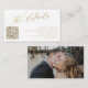 Einfache minimalistische moderne Foto Gold-Kalligrafie Hochzeit Details Scannen QR-Code auf Website-Gehäuse-Karten (der Code wird automatisch mit Ihrem Link URL generiert). Einfach mit Foto (hinten), Code und Text personalisieren.