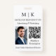 Modernes Abzeichen mit Minimalistischem Namen mit Foto. Schwarz & Weiß oder wählen Sie Ihre eigenen Farben. Fügen Sie dem QR Scan Code Ihre Website oder Web-Adresse für Social Media hinzu. Ideal für kleine Unternehmen, Firmen-Marken, Selbstständige, Schönheitssalons, Wellness-Center, Caterer, Bäckereien, Kaffeehäuser, Restaurants und vieles mehr. Einfach mit Ihren Monogramm-Initialen, Firmennamen und Informationen, Jobtitel, Slogan, Mitarbeiter-Foto oder sogar mit Ihrem Logo oder persönlichem Markendesign personalisieren.