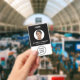 Modernes und berufliches schwarzes Mitarbeiter-ID-Abzeichen mit Foto in einem Kreis, Namen und Titel sowie dem Firmenlogo. Fügen Sie auf der Rückseite zusätzliche Informationen und optionalen QR-Code hinzu.