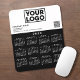 Modernes berufliches Kalendermauspad mit Ihrem Firmenlogo, einem anpassbaren QR-Code, Firmennamen und Kontaktinformationen in schwarzem Text auf weiß über einem weißen 2025 Kalender auf einem schwarzen Farbblock. Fügen Sie in der Sidebar Ihr Logo, die URL für den scannbaren Code, den Firmennamen und den benutzerdefinierten Text (Website, Telefonnummer, Adresse oder Slogan) hinzu. Ihr Logo kann in jeder Form oder Farbe sein. Perfekt für Mitarbeiter und ein durchdachtes Geschenk für Kunden. Copyright ©Claire E. Skinner. Alle Rechte vorbehalten.