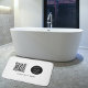 Ein stilvolles weißes, modernes Business-Logo, QR-Code und Text-Design, perfekt für jedes Dekor. Eine trendige personalisierte Badematte, ideal für Geschäftsbäder, Resorts, Hotels, Bürobäder, Mietobjekte etc.