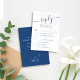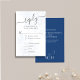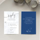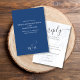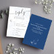 Mit dieser blauen RSVP-Karte für Hochzeitsfeiern mit elegantem Blumendesign und klassischen Wahlmöglichkeiten. Der zeitlose Stil beinhaltet einen QR-Code für den einfachen Zugang zu Ihrer Hochzeitswebsite. gelassen wird, dass die Gäste bequem online mit ihrer ausgewählten Mahlzeit-Option antworten können. Ideal für Paare, die eine klassische und traditionelle Touch Liebe haben, kombiniert diese Antwortkarte Schönheit und Praxisnähe und behalte Ihren besonderen Tag stilvoll organisiert.