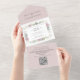 Dieses Design besticht durch einen QR-Code, eine elegante Online-Hochzeitseinladung, einen Blumenrosa-Template-Stil, einen schlichten Stil, der sich ideal für alle eignet, eine scannable Website-Adresse, eine Gästeschrippantwort über die Website, eine elegante Rose-Grünpflanze, eine stilvolle angesagte Kalligrafie-Schrift, ein modernes, alles in einem Dreifach, ein sanfter Romantiker Boho-Böhmischen Stil, eine elegante Hochzeitssenssuite.