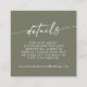 Diese schicke, olivgrüne Hochzeitskarte QR Code Details Gehäuse Karte ist perfekt für eine minimalistische Hochzeit. Der woodsy dunkelgrüne Erdton moderne böhmische Design zeichnet sich durch einfache rustikale Kalligraphie mit einem einzigartigen und dennoch klassischen Stil aus. Geben Sie Ihre Webadresse in den QR-Code-Bereich der Vorlage ein, und der QR-Code aktualisiert und verlinkt automatisch auf Ihre Website.