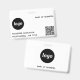 Einfaches Logo mit benutzerdefiniertem Text und QR-Code berufliches Abzeichen für Geschäftsnamen. Ändern Sie das Logo, das Ziel der QR-Code-Website und jeden Text, der angepasst werden soll. Auf der Rückseite finden Sie Ihr Logo und Ihren Firmennamen.