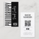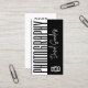 Moderne, berufliche Schwarz-Weiß-Fotografie Visitenkarte. Das Design ist mit einem schwarzen Typografie-Skript ''Fotografie'' in Hauptstadt-Schrift auf weißem Hintergrund, dem Namen und dem Logo auf der Vorderseite ausgestattet. Personalisieren Sie weiter mit qr Code, Social Media und Kontaktdaten auf der Rückseite.