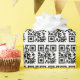 QR Code Happy Holidays Nachricht auf weißem Hintergrund. Die Hintergrundfarbe kann geändert werden.