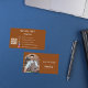 Ein schokoladenbrauner Hintergrund. Personalisieren Sie Ihren Titel, Geschäftsnamen/Namen und Text und fügen Sie ihn vorn hinzu. Weißer Text. Ein bogenförmiger Rahmen aus Foto. Zurück: Vorlagen für Ihren Namen, Titel, Telefonnummer, E-Mail- und Website-Adresse, Ihren eigenen QR-Code für Ihre Website oder Ihr Social-Media-Konto. Facebook und Instagram Icons/account.